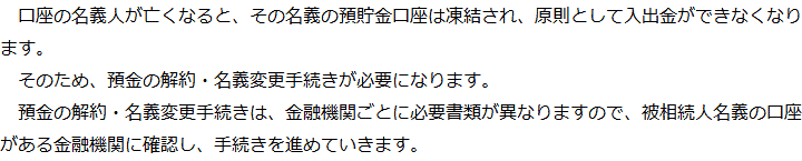 預金の解約・名義変更