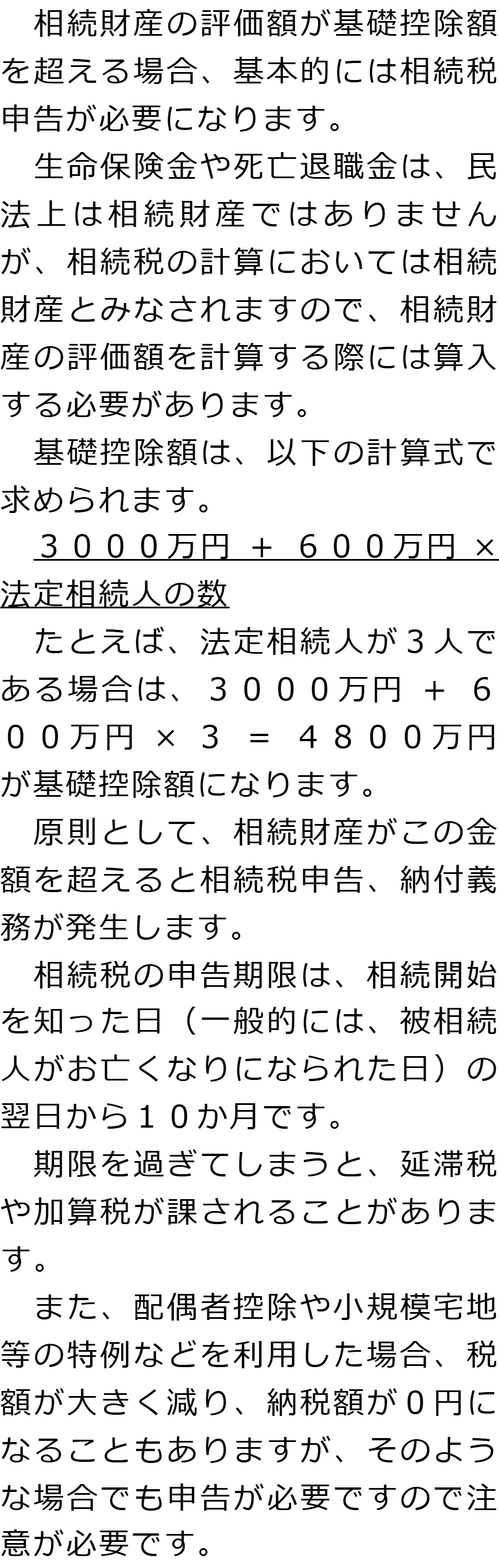 Q相続税申告はどのような場合に必要ですか?A Q&A(目次)Q&Aトップ相続手続きの必要事項に関するQ&A 受付時間 平日 9時~21時、土日祝 9時~18時 夜間・土日祝の相談も対応します (要予約) 所在地 〒250-0011 神奈川県小田原市栄町1‐8-1Y&Yビルディング3F 0120-2403-39 お問合せ・アクセス・地図