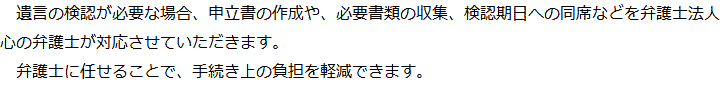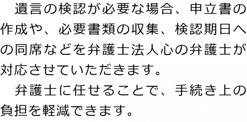 トップ業務内容遺言の検認 階層構造▼ 業務内容(目次) 遺言の検認 業務内容(目次)業務内容トップ行政書士法人心の業務内容遺言遺産整理相続人調査相続財産調査遺産分割協議書の作成預金・貯金の解約・名義変更証券口座の解約・名義変更自動車の名義変更心グループのその他の業務内容家族信託・民事信託節税対策事業承継遺言の検認相続放棄限定承認遺産分割遺留分侵害額請求相続登記相続税申告相続税調査 受付時間 平日 9時~21時、土日祝 9時~18時 夜間・土日祝の相談も対応します (要予約) 所在地 〒250-0011 神奈川県小田原市栄町1‐8-1Y&Yビルディング3F 0120-2403-39 お問合せ・アクセス・地図