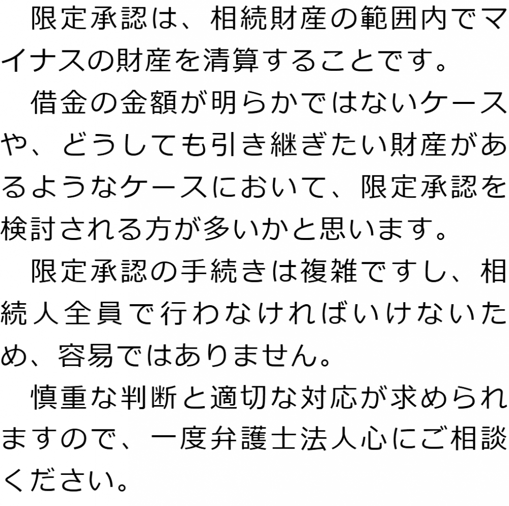 トップ業務内容限定承認 階層構造▼ 業務内容(目次) 限定承認 業務内容(目次)業務内容トップ行政書士法人心の業務内容遺言遺産整理相続人調査相続財産調査遺産分割協議書の作成預金・貯金の解約・名義変更証券口座の解約・名義変更自動車の名義変更心グループのその他の業務内容家族信託・民事信託節税対策事業承継遺言の検認相続放棄限定承認遺産分割遺留分侵害額請求相続登記相続税申告相続税調査 受付時間 平日 9時~21時、土日祝 9時~18時 夜間・土日祝の相談も対応します (要予約) 所在地 〒250-0011 神奈川県小田原市栄町1‐8-1Y&Yビルディング3F 0120-2403-39 お問合せ・アクセス・地図